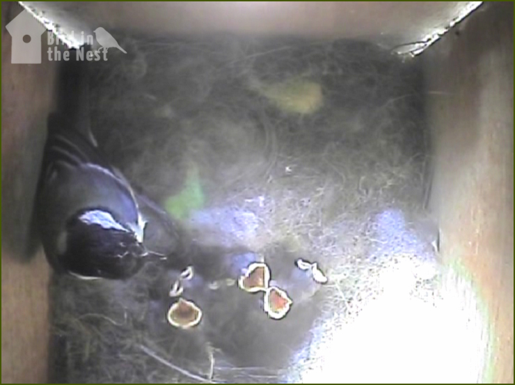 One of the parents did make a brief visit to the nest box entrance hole, around 30 minutes after the last young fledged. No more entries were made inside the box.